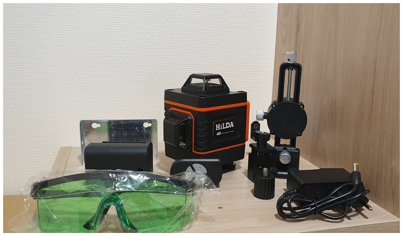 Beam color: green, type: laser, number of beams: 16 pcs., type of laser level: linear, build distance without receiver: 40 m, features: sound indication, equipment: batteries accumulator, charger