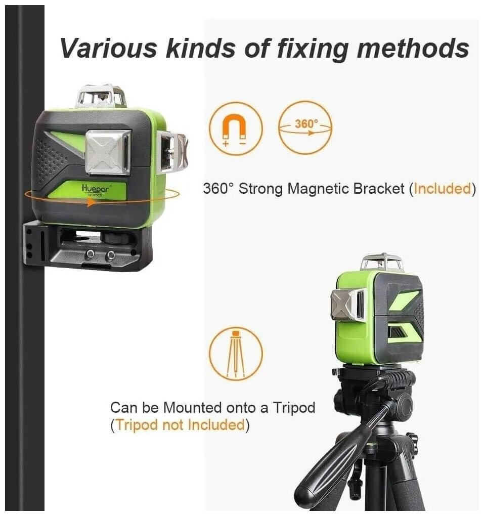 Beam color: green, type: laser, automatic leveling, number of beams: 12 pcs., laser level type: linear, build distance without receiver: 25 m, functions: leveling off, features: light