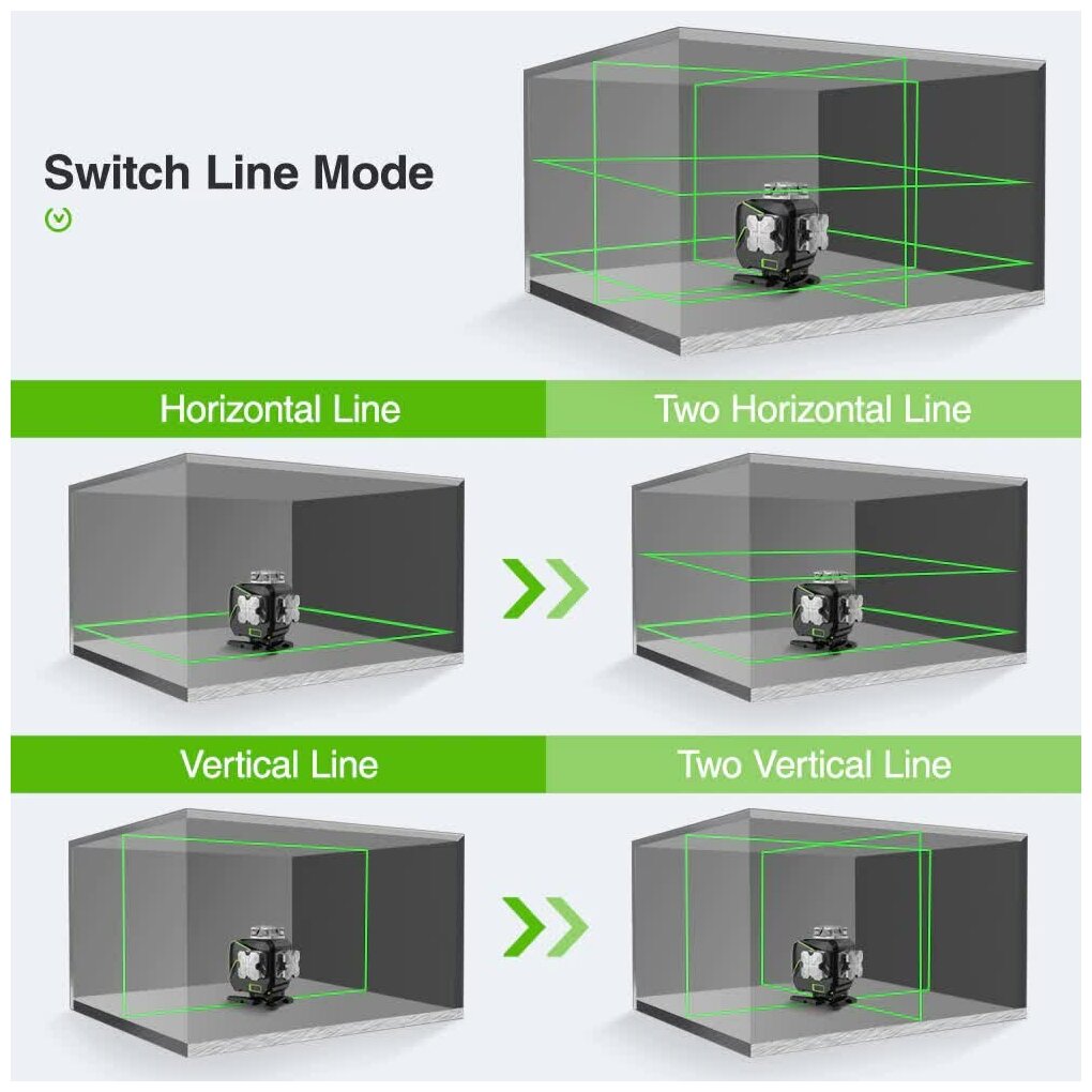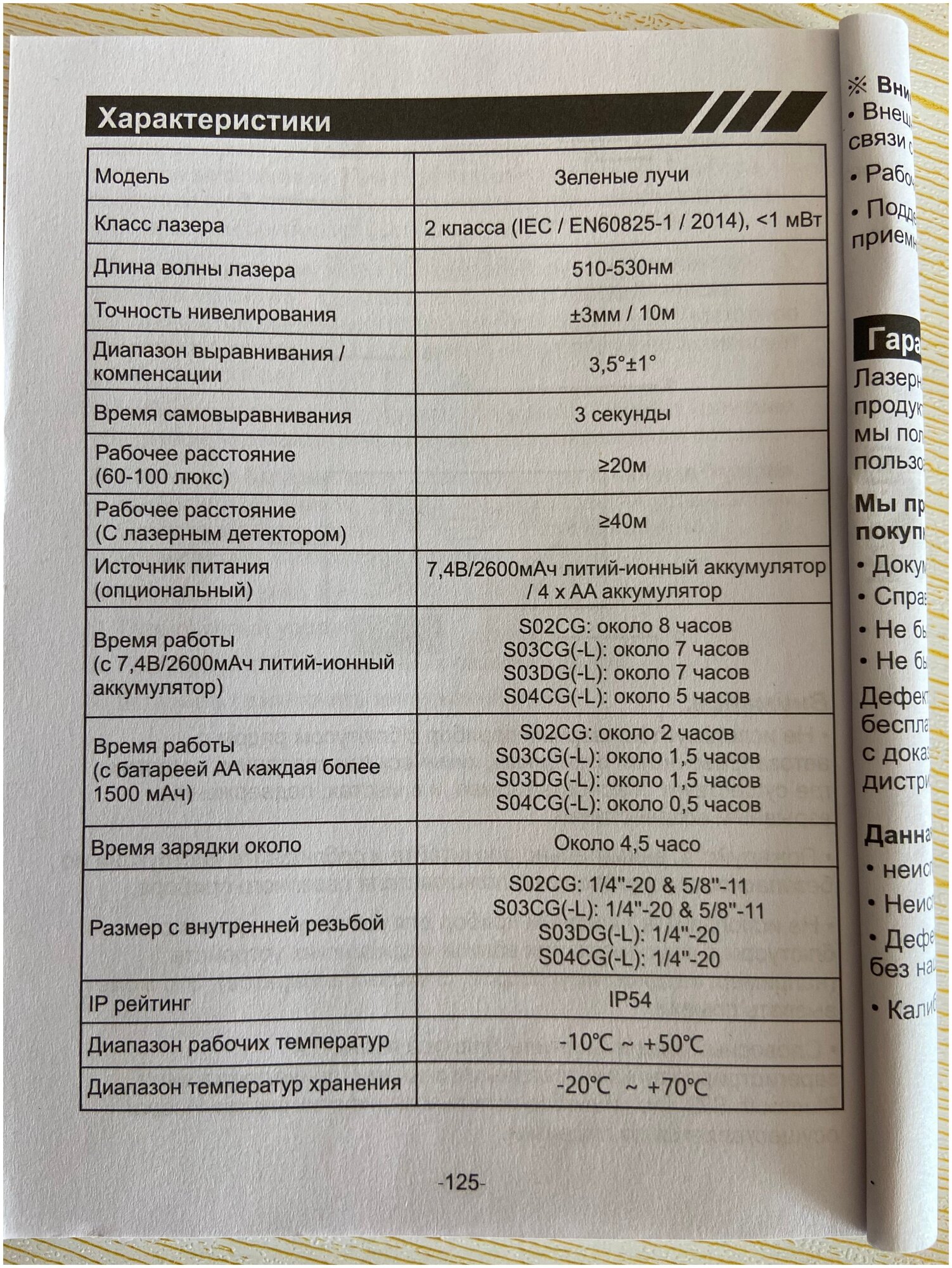 Beam color: green, type: laser, automatic leveling, number of beams: 16 pcs., laser level type: linear, build distance without receiver: 20 m, functions: lower horizon, leveling off, special