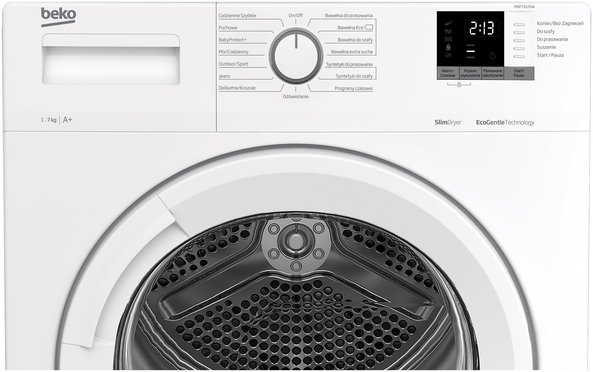 Type: tumble dryer, installation: in a column, freestanding, depth: 609 mm, width: 596 mm, loading type: front, drying type: condensing with heat pump, modes / functions: gentle drying, easy ironing, sound