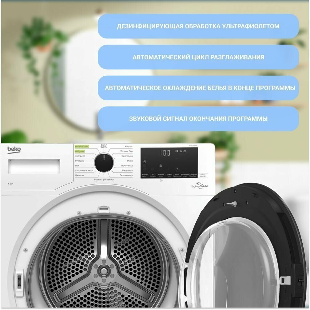 Depth excluding door and switch thickness: 46 cm; disinfectant ultraviolet treatment; automatic smoothing cycle; automatic cooling of the laundry at the end of the program