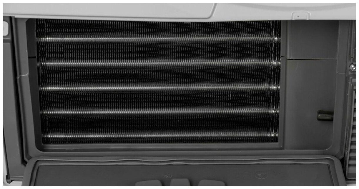 Touch LCD display; drying time in a cabinet when drying at a speed of 1000 rpm - 185 min; tank placement - on the left side of the panel; loading hatch - gray with edging; drying control - conductometric; engine system - inve