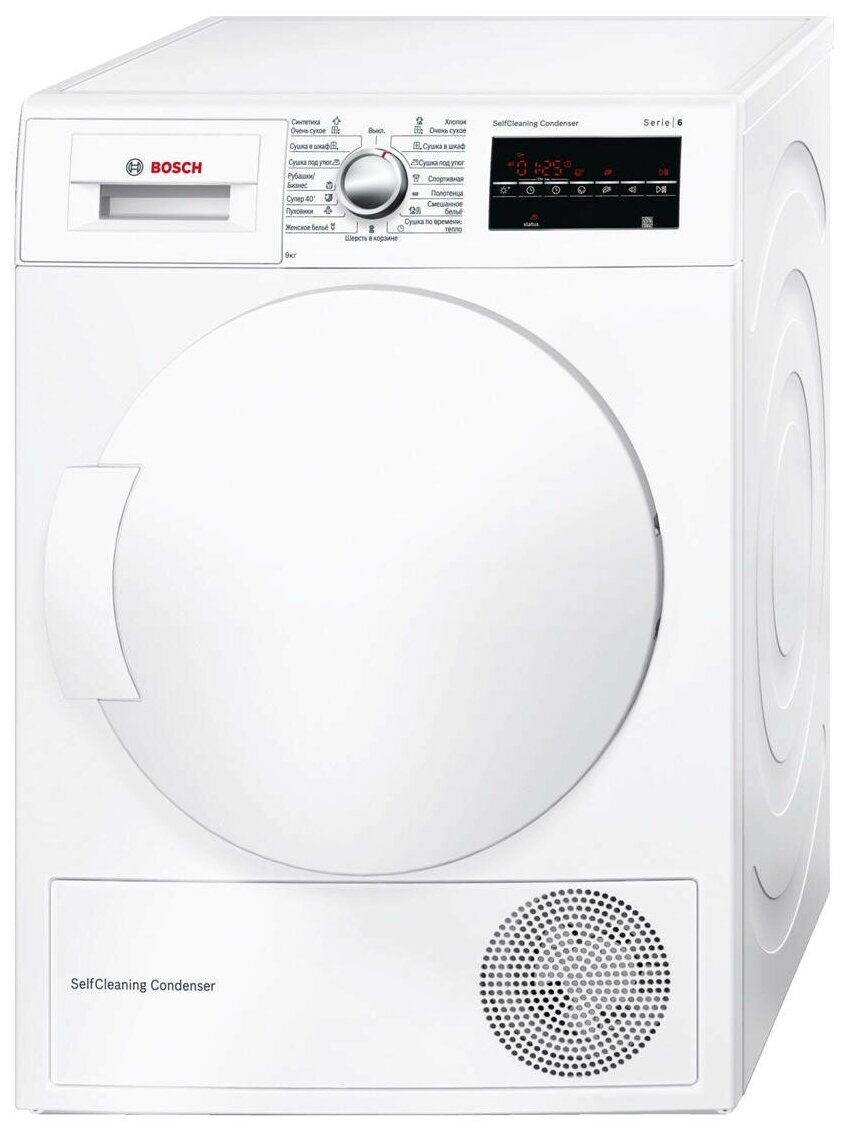 Fluff filter, delayed start, wrinkle prevention, reversible drum rotation, program duration setting