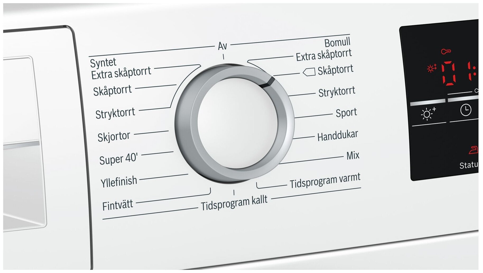 Type: tumble dryer, installation: freestanding, with heat pump, width: 598 mm, loading type: front, drying type: condensing with heat pump, modes/functions: blended fabrics, shirts, sports