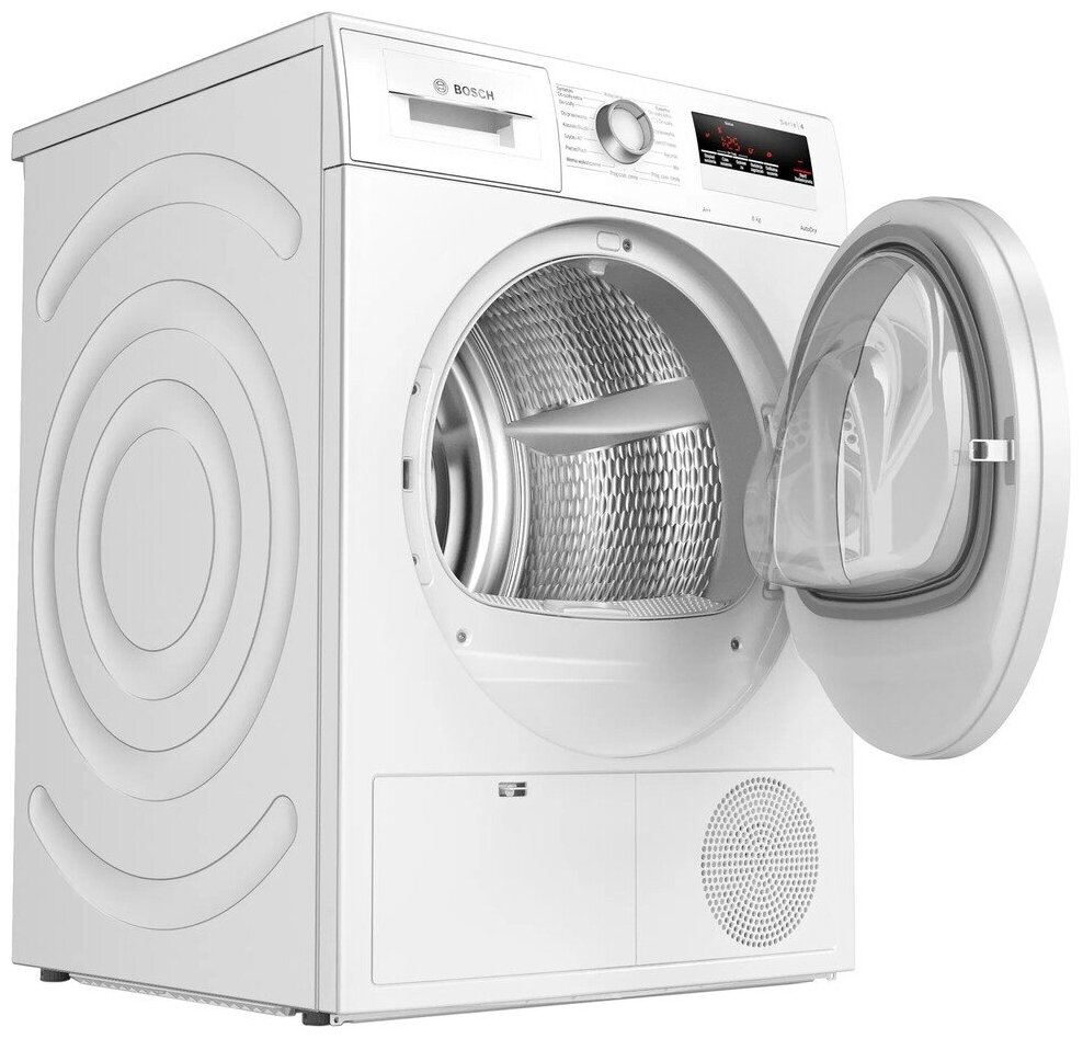 Type: tumble dryer, installation: in a column, freestanding, depth: 609 mm, width: 596 mm, loading type: front, drying type: condensing with heat pump, modes / functions: gentle drying, easy ironing, sound