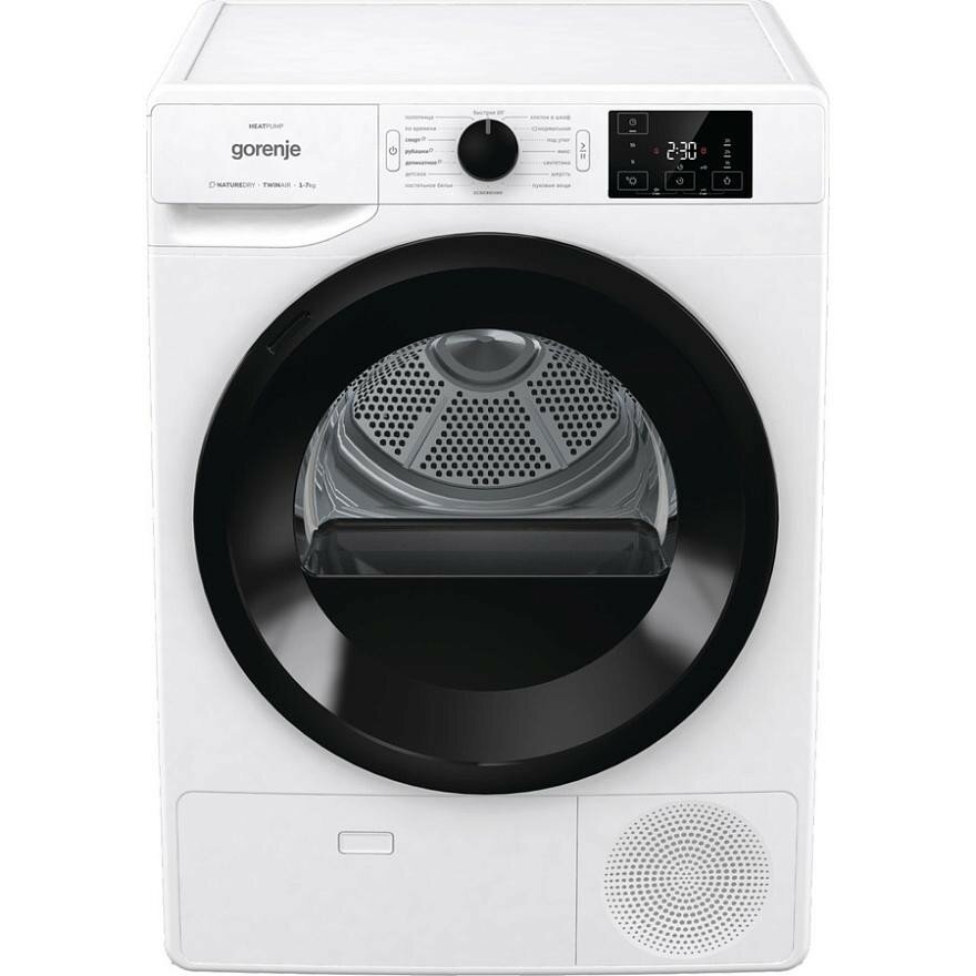 Type: tumble dryer, installation: in a column, freestanding, depth: 609 mm, width: 596 mm, loading type: front, drying type: condensing with heat pump, modes / functions: gentle drying, easy ironing, sound