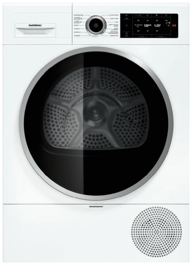 Type: tumble dryer, installation: freestanding, depth: 599 mm, width: 598 mm, loading type: front, drying type: condensing with heat pump, modes / functions: steam, towels, shirts, spo