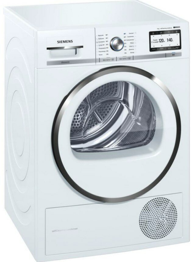Fluff filter, humidity control, delayed start, wrinkle prevention, condensation collection, program duration setting