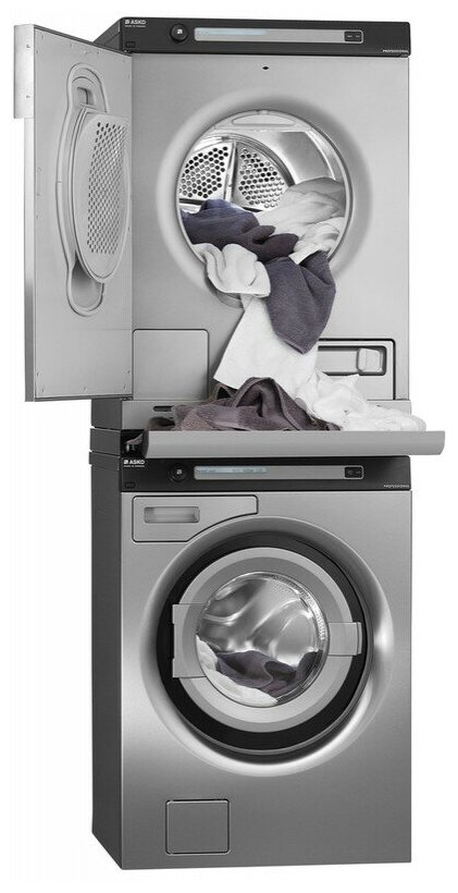 Type: tumble dryer, installation: in a column, freestanding, depth: 609 mm, width: 596 mm, loading type: front, drying type: condensing with heat pump, modes / functions: gentle drying, easy ironing, sound