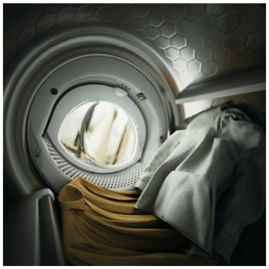 Type: tumble dryer, installation: in column, freestanding, under countertop, partially recessed, depth: 636 mm, width: 596 mm, loading type: front, drying type: condensing with heat pump, modes/functions: