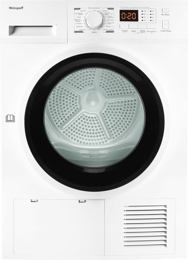 Type: tumble dryer, installation: in a column, freestanding, depth: 609 mm, width: 596 mm, loading type: front, drying type: condensing with heat pump, modes / functions: gentle drying, easy ironing, sound