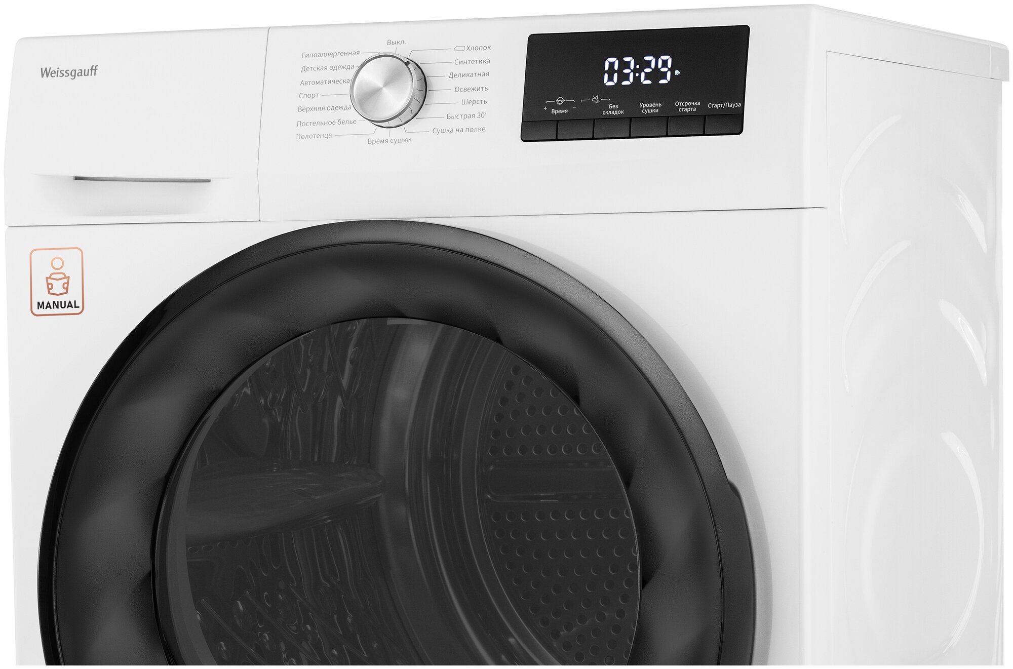 Heat pump, Laundry load up to 9 kg, Residual moisture drying, Fully electronic control, Interior lighting