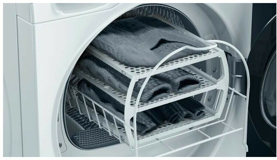 Type: tumble dryer, installation: freestanding, depth: 665 mm, width: 598 mm, loading type: front, drying type: condensing with heat pump, modes/functions: underwear, pillows/duvets, towels, bedding