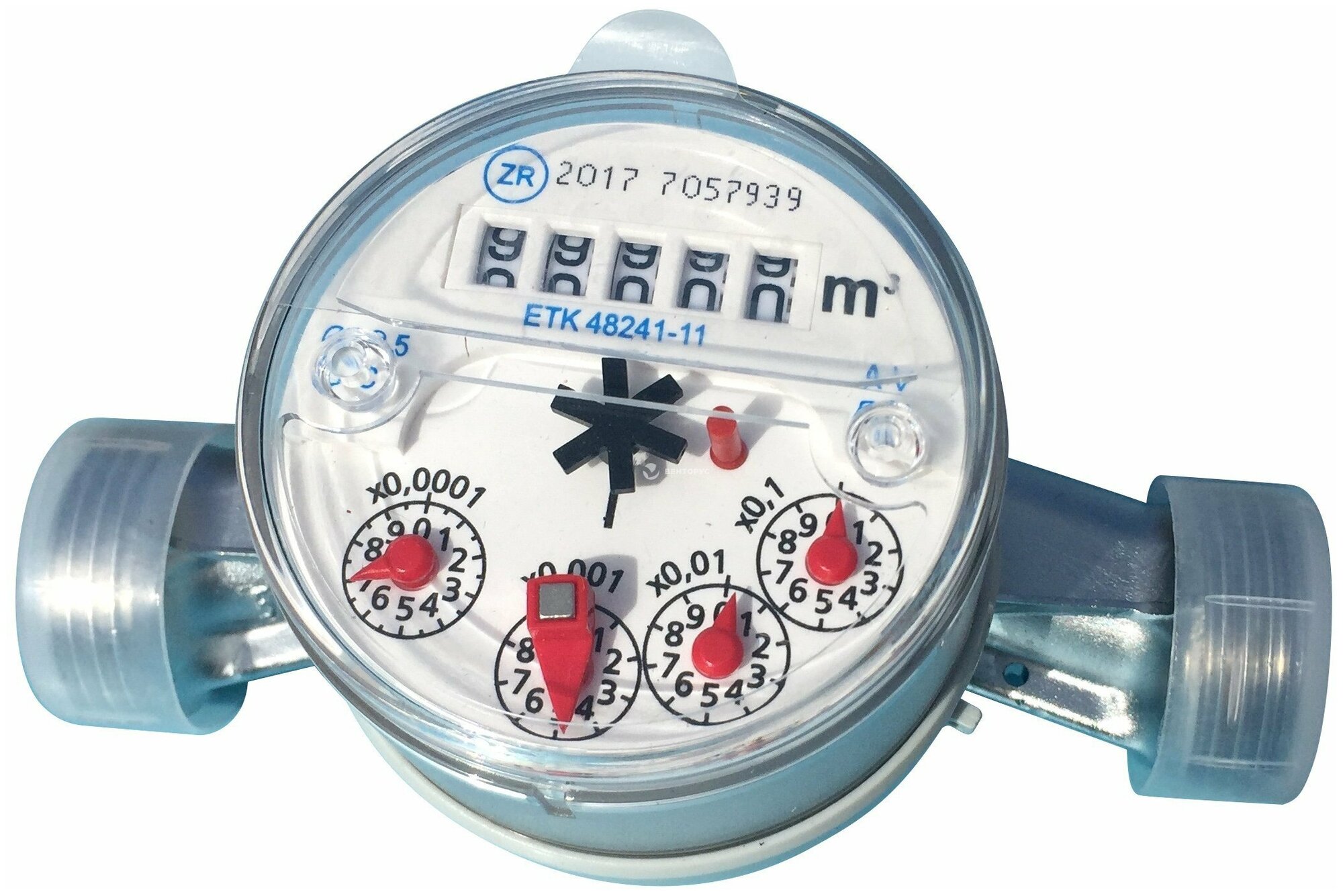 When installed horizontally, the meter corresponds to metrological class B, when installed vertically, to class A, the minimum flow rate is 0.1 m³; the maximum water temperature is 40℃; the counter is equipped with a magnetic needle and prepared