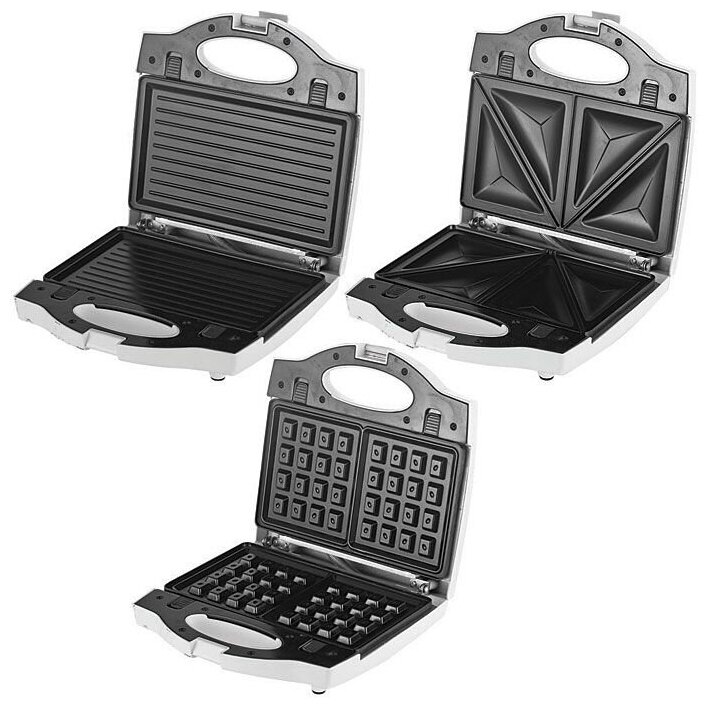Type: appliance with interchangeable panels, panel type: waffles, grill, sandwiches, waffle panel type: Belgian, power: 790 W, features: non-stick coating, possibility of changing panels, overheating protection, work indicator