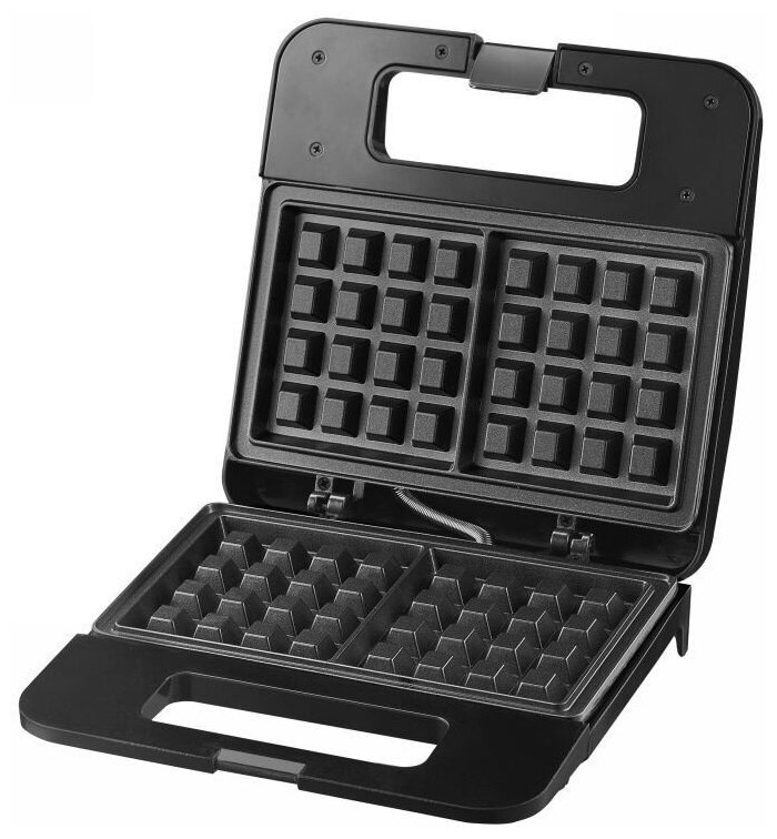 Type: waffle iron, type of panel: waffles, power: 750 W, number of servings: 2 pcs, additional functions: heating indicator, lid lock, non-heating handle, features: non-stick coating