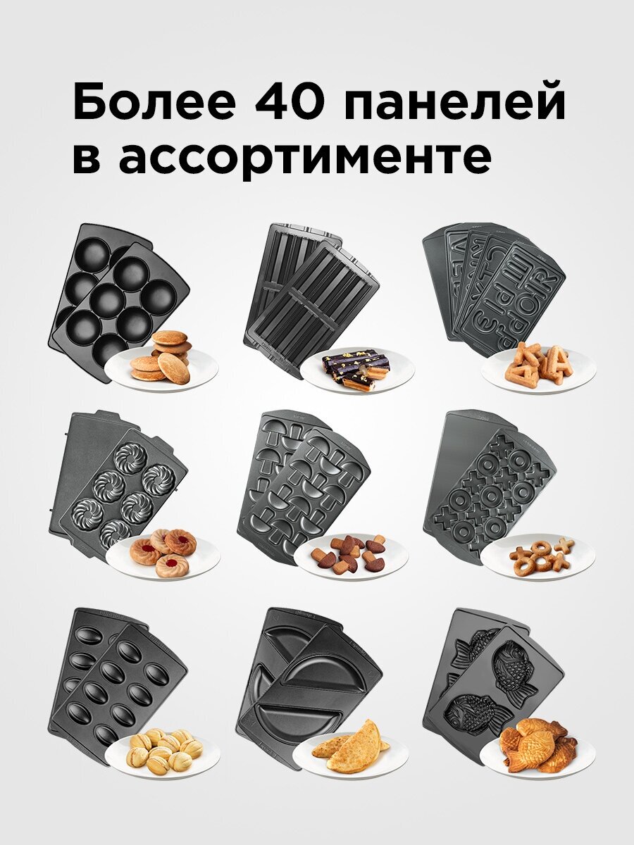Type: appliance with interchangeable panels, panel type: waffles, pastries and biscuits, donuts, waffle panel type: Belgian, power: 700 W, features: non-stick coating, interchangeable panels, overheating protection, ind