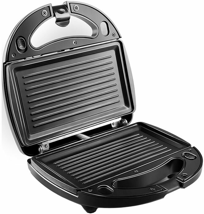 Type: appliance with interchangeable panels, panel type: waffles, grill, sandwiches, waffle panel type: Belgian, power: 790 W, features: non-stick coating, possibility of changing panels, overheating protection, work indicator
