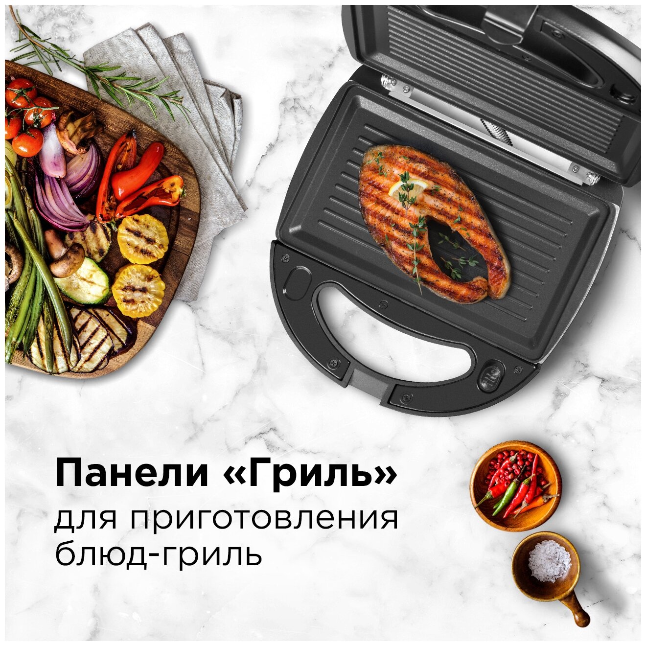 Sandwich panel for 4 servings, waffle panel for 2 servings; single panel size: 250×132×9mm; complete set: multi-baker, recipe book, instruction manual, service book, set of removable panels for baking