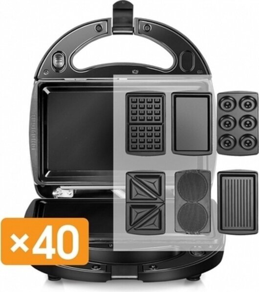 Type: appliance with interchangeable panels, panel type: waffles, grill, sandwiches, waffle panel type: Belgian, power: 790 W, features: non-stick coating, possibility of changing panels, overheating protection, work indicator