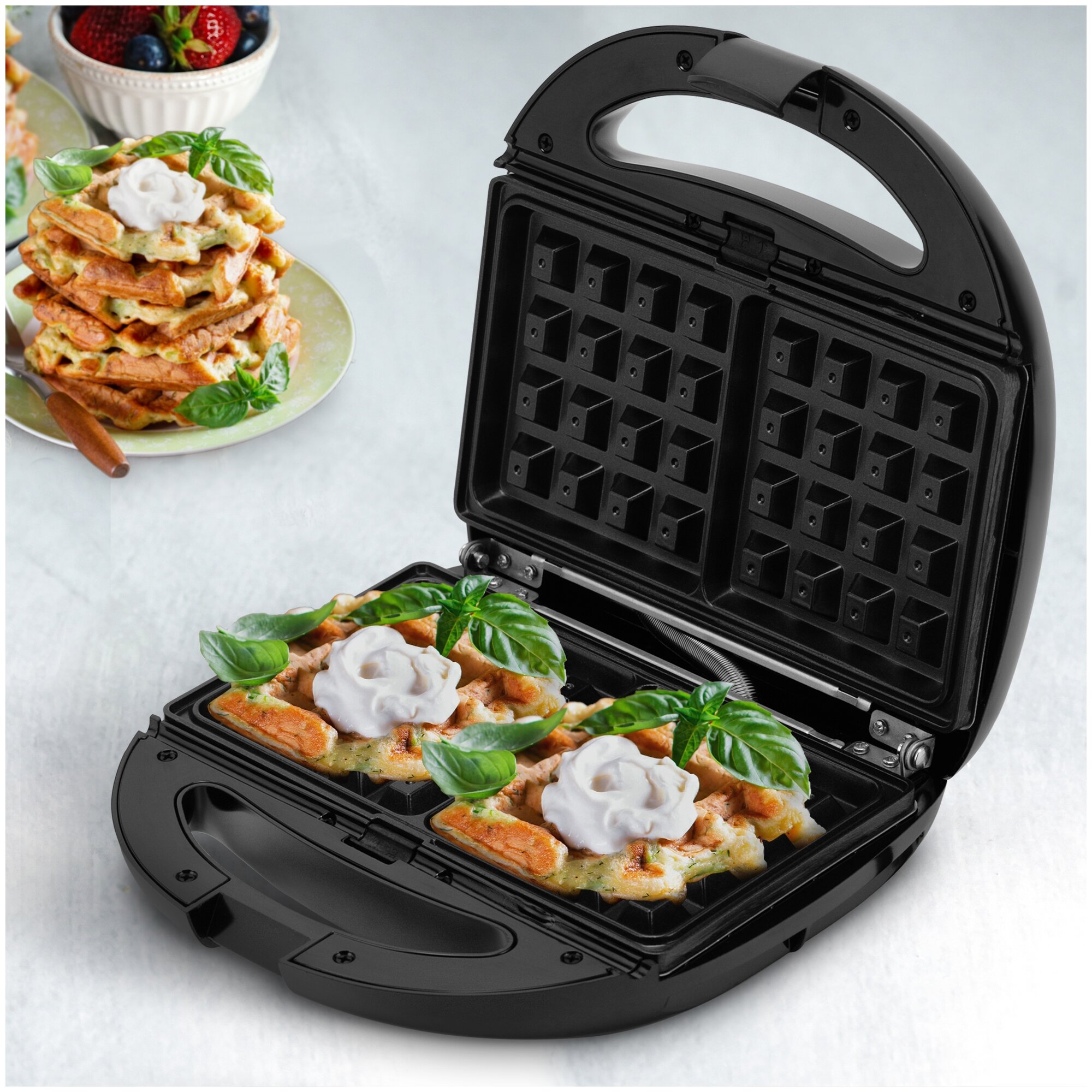 Waffles, grill, sandwiches