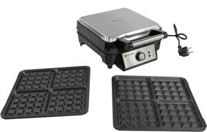 Type: appliance with interchangeable panels, panel type: waffles, pastries and biscuits, waffle panel type: Belgian, power: 1100 W, number of servings: 4, additional functions: temperature control, features: non-stick