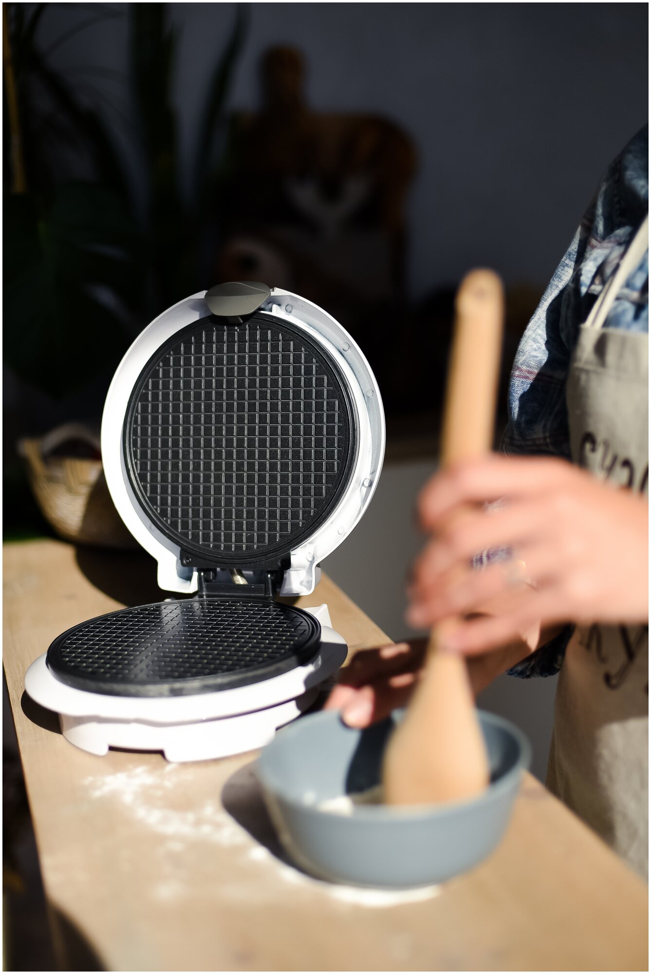 Type: waffle iron, type of panel: waffles, power: 770 W, additional functions: temperature control, features: non-stick coating, overheating protection, operation indicator, cone for horns included