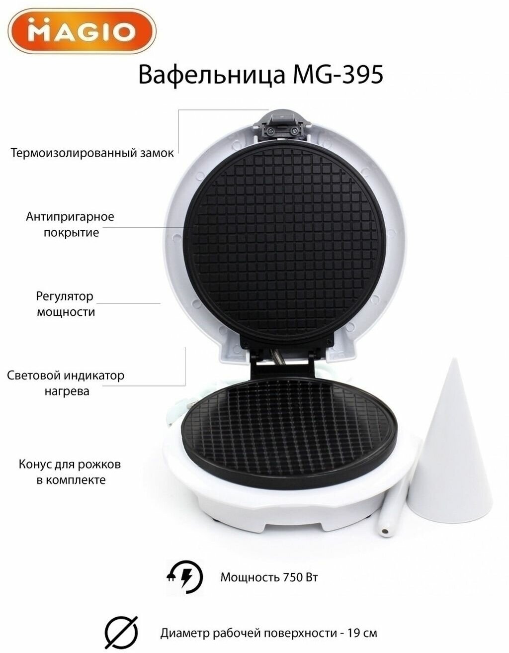 Waffle maker for thin waffles with non-stick coating Magio MG-395, cone for making cones included
