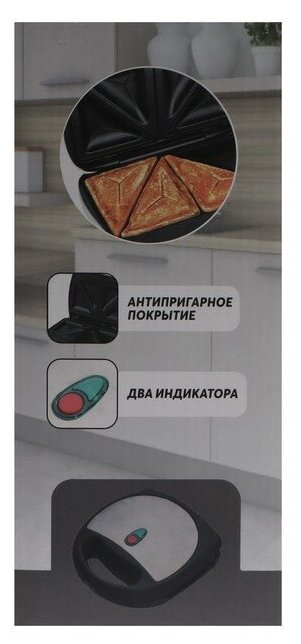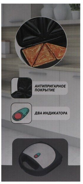 Type: waffle iron, panel type: waffles, sandwiches, power: 850 W, features: non-stick coating, overheating protection, operation indicator