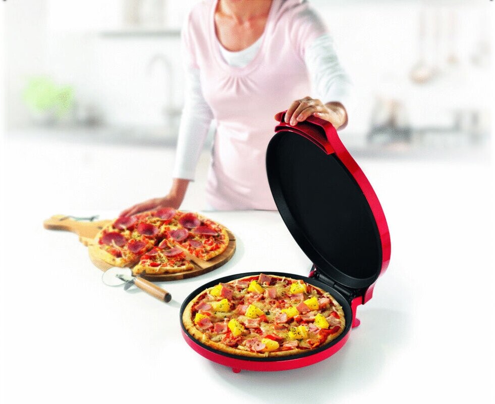 Type: pizza maker, type of panel: pizza, power: 1500 W, number of servings: 1, features: non-stick coating, operation indicator, cord storage compartment