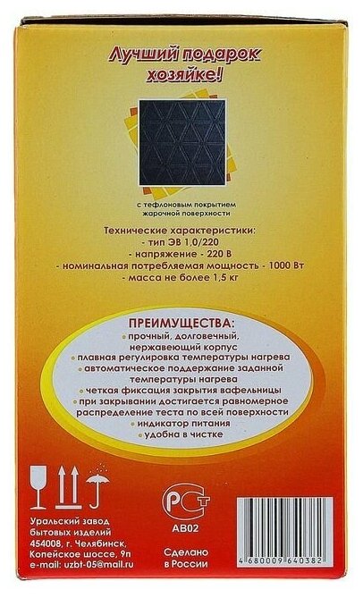 Type: appliance with interchangeable panels, panel type: waffles, grill, sandwiches, waffle panel type: Belgian, power: 790 W, features: non-stick coating, possibility of changing panels, overheating protection, work indicator