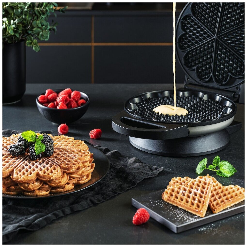 Rubberized legs; a side to prevent spilling the dough; measuring spoon included; baking diameter: 23 cm