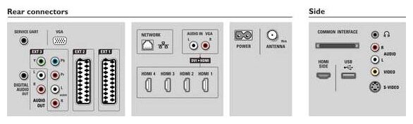 AV In, Ethernet - RJ-45, USB Type-A, HDMI In, HDMI x 5 In, S-Video In, VGA In, Digital Coaxial Audio Out, Headphone Out, Composite Video In, Component Video In, CI Slot