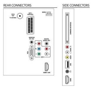 AV In, SCART, USB Type-A, HDMI In, HDMI In x 2, VGA In, Digital Coaxial Audio Out, Headphone Out, Composite Video In, Component Video In, CI Slot