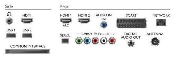 AV-in, Ethernet - RJ-45, SCART, USB Type-A x 2, HDMI-in, HDMI-in x 3, digital coaxial audio out, headphone out, composite video in, component video in, CI slot