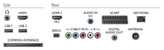 AV-in, Ethernet - RJ-45, SCART, USB Type-A x 2, HDMI in, HDMI in x 2, digital coaxial audio out, headphone out, composite video in, component video in, CI slot