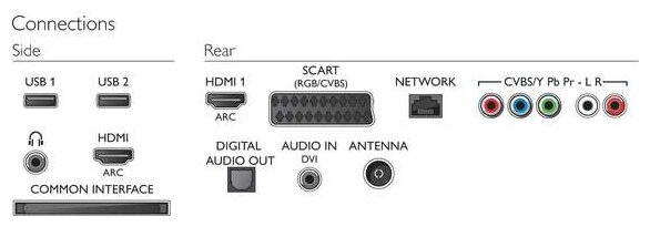 AV-in, Ethernet - RJ-45, SCART, USB Type-A x 2, HDMI-in, HDMI-in x 2, digital optical audio out, headphone out, composite video in, component video in, CI slot, CI/CI+ slot
