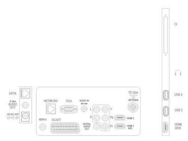 Ethernet - RJ-45, SCART, USB Type-A x 2, HDMI in, HDMI in x 3, VGA in, digital coaxial audio out, headphone out, component video in, CI/CI+ slot