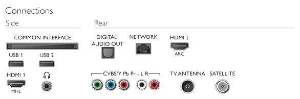 AV-in, Ethernet - RJ-45, USB Type-A x 2, HDMI in x 2, digital optical audio output, headphone output, composite video input, CI/CI+ slot