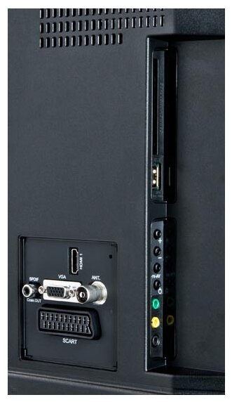 AV input, SCART, USB Type-A, HDMI input, VGA input, digital coaxial audio output, headphone output, composite video input, component video input, CI slot