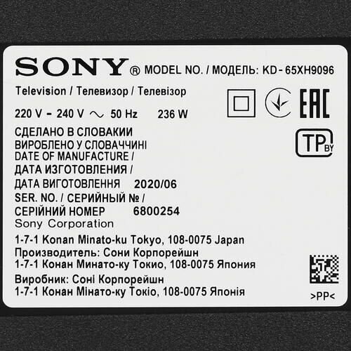 Chromecast support; backlight type Full Array; X1 4K HDR processor; Dolby Atmos support; HDMI™ signal: 4096 x 2160p 24, 50, 60Hz, 3840 x 2160p 24, 25, 30, 50, 60Hz, 1080p 30, 50, 60, 100, 120Hz, 1080/24p, 1080i 50, 60Hz, 720p 30, 50, 60Hz, 720/24p, 576p,
