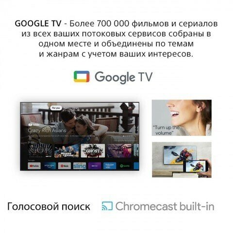 X1 4K HDR processor; dimming type Frame Dimming; OS Android 10; Dolby Atmos support; Built-in ChromeCast