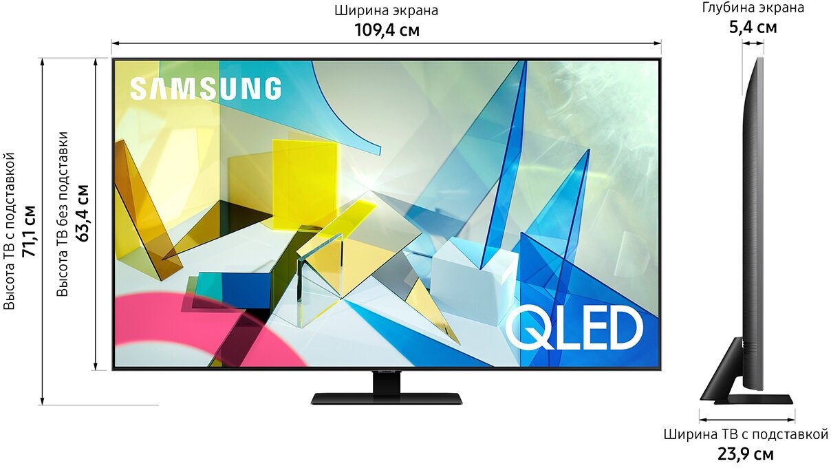 Diagonal: 46-50, diagonal exactly: 50, HD resolution: 4K UHD, screen refresh rate: 60Hz, screen technology: HDR, LED, QLED, Digital TV support: DVB-C, DVB-S, DVB- S2, DVB-T, DVB-T2, Analogue PAL, SECAM, NTSC, No, Smart TV Platform: Tizen, Wireless
