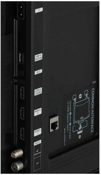 Ethernet - RJ-45, USB Type-A, HDMI input x 3, digital optical audio output, CI/CI+ slot