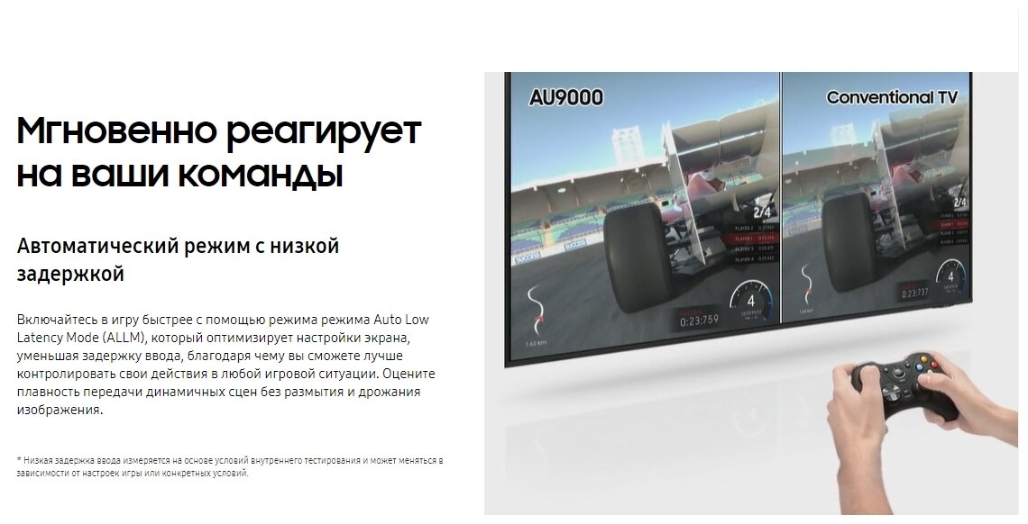 Q Symphony; Object Tracking Sound Lite; Vesa 200x200; Tap view; Crystal Processor 4K; Wireless DeX support; auto-enable game mode ALLM, Game Motion Plus, Super Ultra Wide Game View, Game Bar; IPv6 support; cinema mode; multiscreen