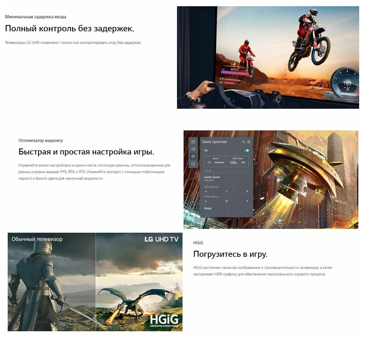 DLNA, EPG, voice control, hotel TV, child lock, game mode
