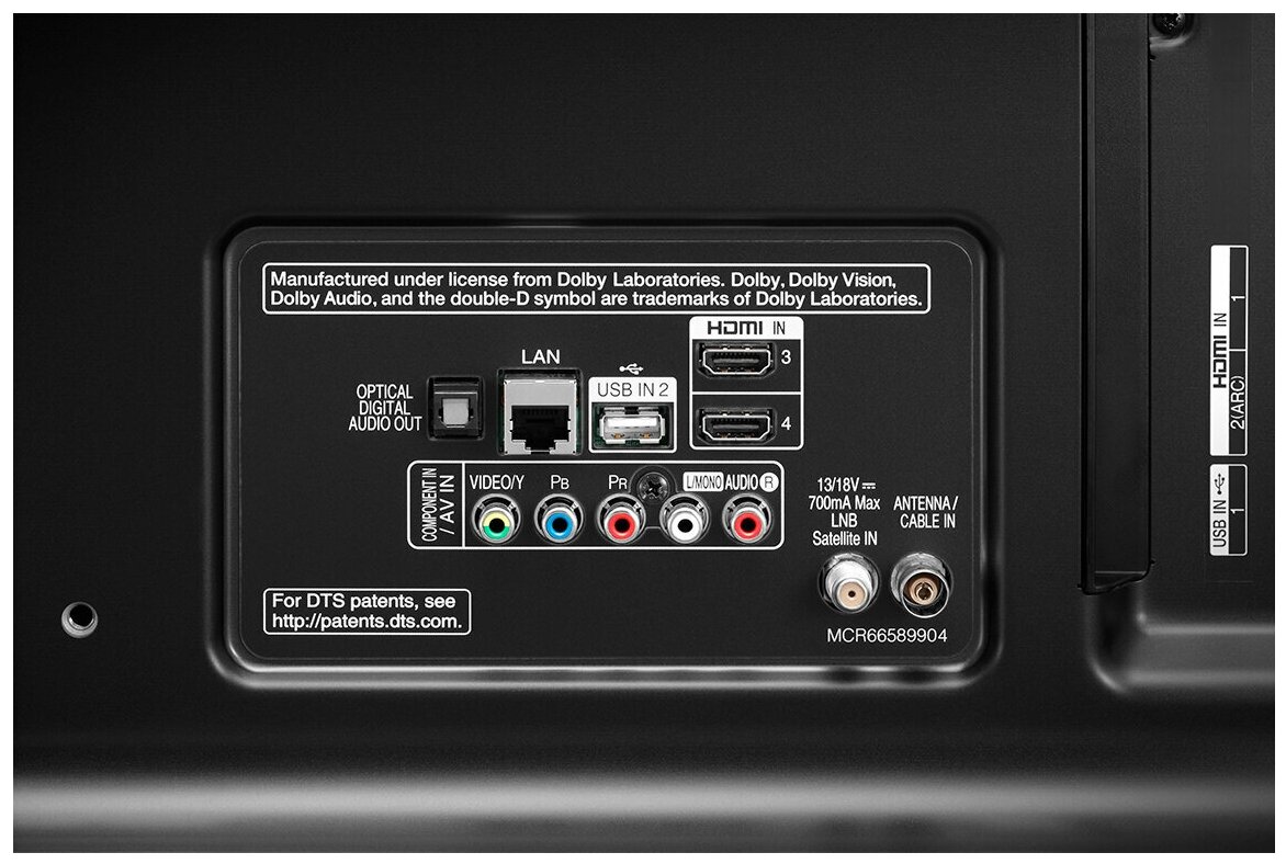 AV-in, Ethernet - RJ-45, USB Type-A x 2, HDMI in x 4, digital optical audio output, headphone output, composite video input, CI/CI+ slot