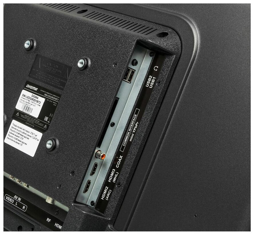 AV in, Ethernet - RJ-45, USB Type-A x 2, HDMI in x 3, digital coaxial audio out, headphone out, composite video in, CI/CI+ slot