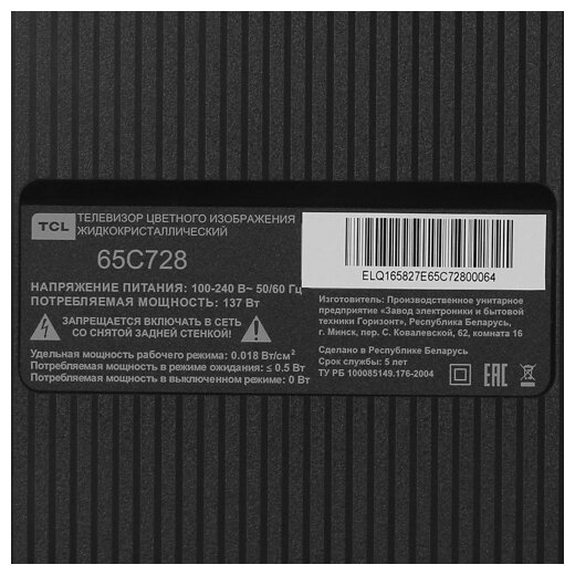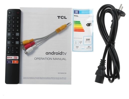 Diagonal: 58"-69", diagonal exactly: 65", HD resolution: 4K UHD, screen refresh rate: 120Hz, screen technology: QLED, Digital TV support: DVB-C, DVB-S, DVB-S2, DVB- T, DVB-T2, Smart TV platform: Android TV, Wireless: Wi-Fi, Number of inputs