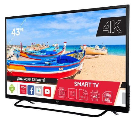Diagonal: 40-45, diagonal exactly: 43, HD resolution: 4K UHD, screen refresh rate: 60Hz, screen technology: LED, Digital TV support: DVB-C, DVB-T, DVB-T2, analogue PAL , SECAM, NTSC, Smart TV platform: Android, Wireless: Wi-Fi, Quantity
